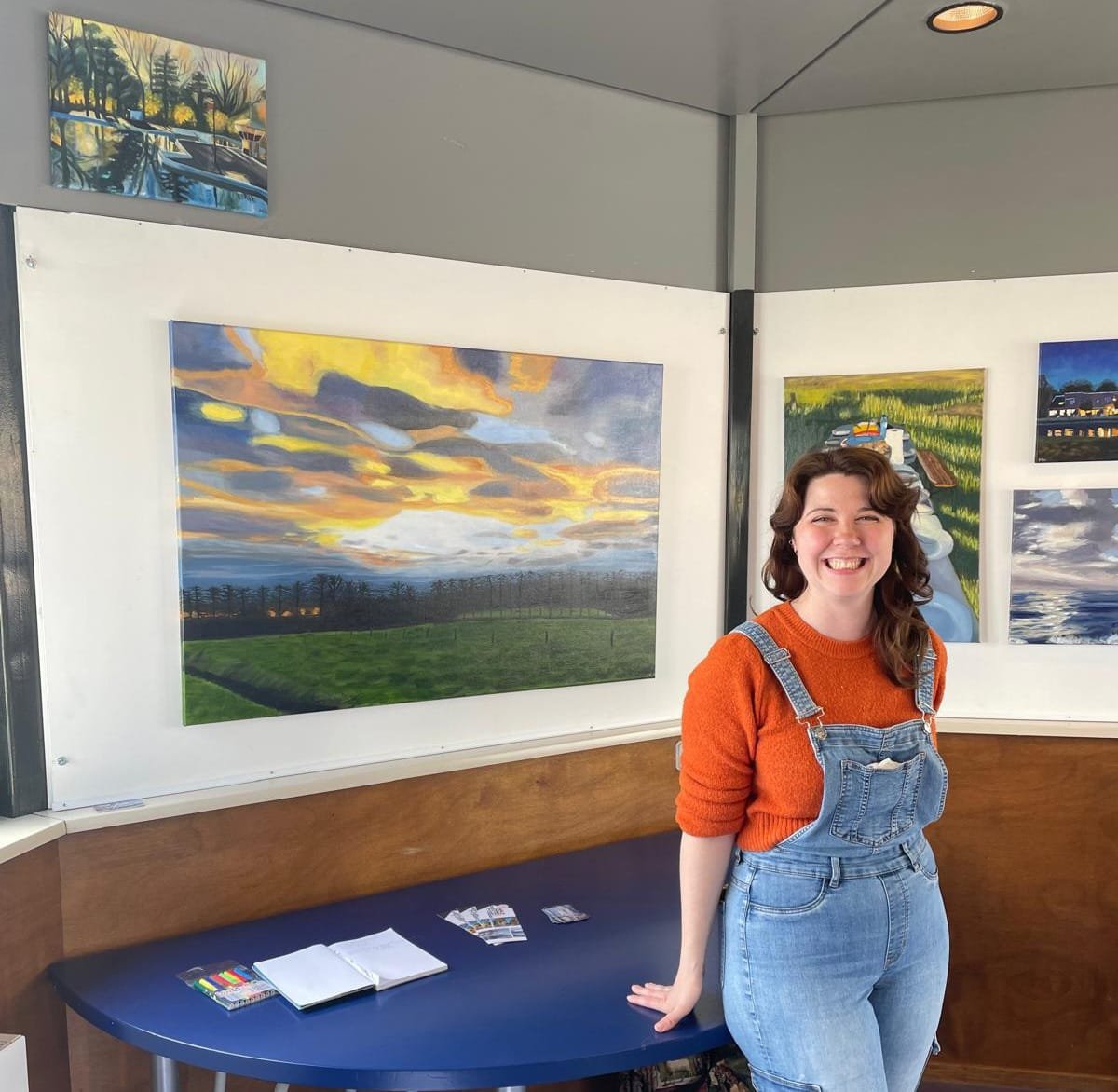 Marijke will be present daily from 9:30 AM to 5:00 PM, inviting visitors to drop by, observe her creative process, and engage in conversation about art, inspiration, and the landscapes that shape her work. Her paintings—often featuring atmospheric skies, reflections, and tranquil nature scenes—will also be on display during the residency.